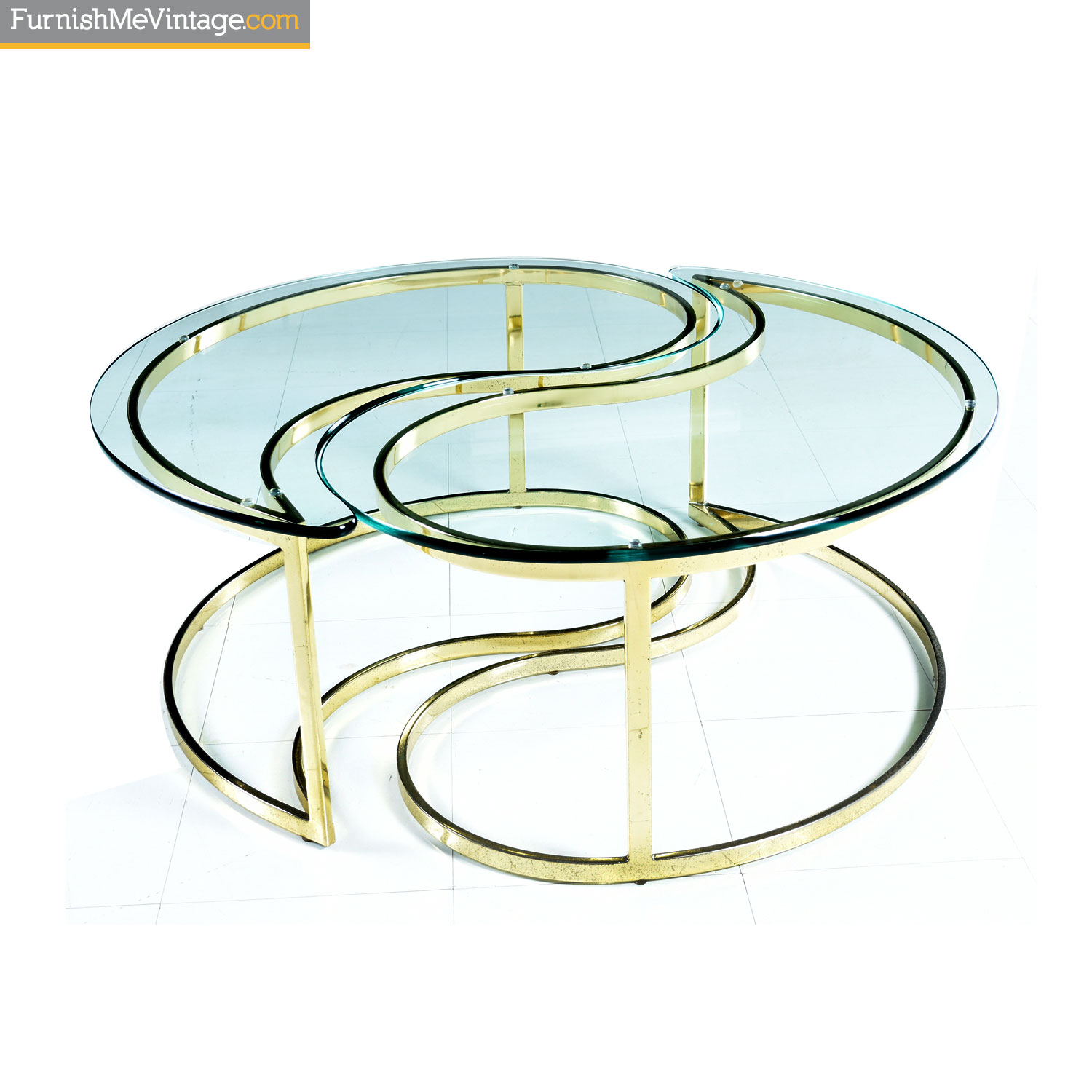 1960s Mid Century Brass Yin Yang Coffee Tables With Glass Tops A Pair